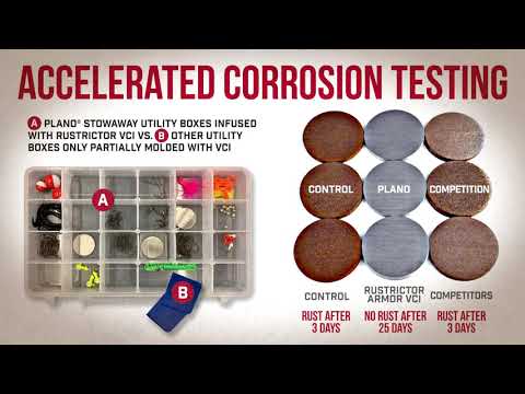 Plano’s Rustrictor™ StowAway® utility boxes fight back at rust buildup unlike any other tackle box you've seen before. Whereas many rust-preventing tackle storage systems use treated dividers, Rustrictor Stows surround tackle with rust-preventing VCI from all angles, creating 360 degrees of complete protection.